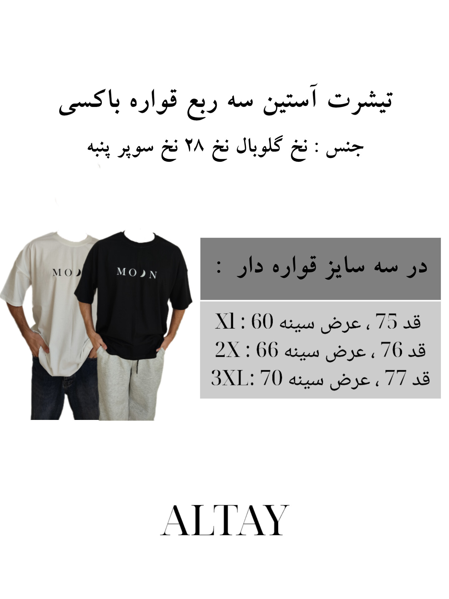 تیشرت آستین سه ربع قواره باکسی طرح moon🌙